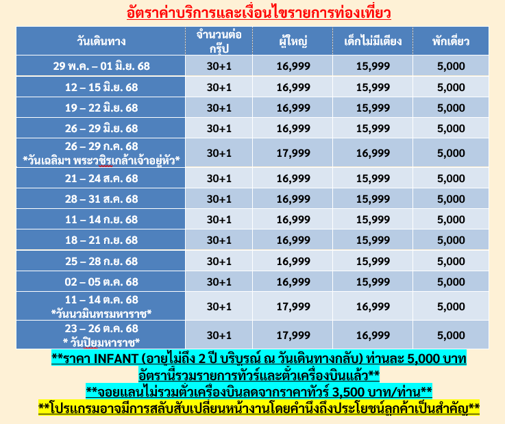 📆 เดินทาง : พฤษภาคม ตุลาคม 2568